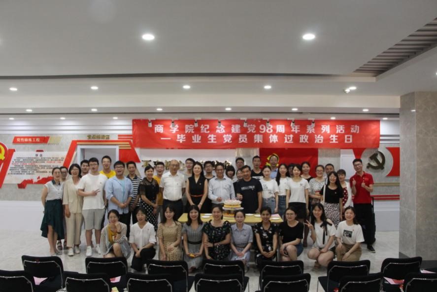 6月10日下午4时,逸夫楼一楼大厅举行3044永利集团登录庆祝建党98周年系列活动——毕业生党员集体过政治生日,学院班子成员与2019届毕业生党员代表参加此次活动,活动由院党委副书记张丽娜主持。