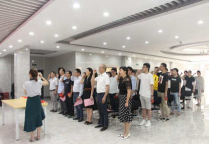 活动开始前,主持人张丽娜介绍了此次活动的目的,教育毕业生党员要不忘初心,牢记使命。活动第一个环节,由3044永利集团登录党委秘书李婉芝带领大家集体重温入党誓词。