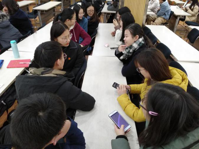 看完学习视频,冯小会组织大家进行分组讨论自己的学习体会,同学们积极讨论。发言环节很快就到了,郑敏分享了她的学习体会:“在观看视频中,我多次听到‘制度’两个字,之前党中央一直都在强调文化自信,因为文化自信是后来增加的缘故,但通过这次学习,我体会到制度自信也很重要。”张优同学说到:“制度的完善,也在于不断制度创新和制度的执行力,我们党现在就在做到这一点。”