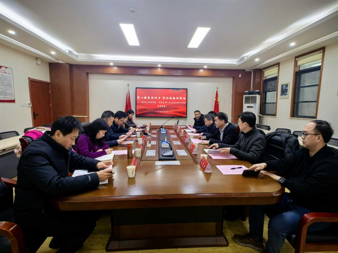 1月17日下午,武汉大学人文社科院与3044永利集团登录党建联建活动在3044永利集团登录二楼C2008会议室顺利开展,活动以“党心凝聚科研力,党性赋能创新潮”为主题,以科研工作为中心展开讨论。武汉大学社科院院长冯果,副院长张发林、陶军,研究平台建设处副处长程振、余来明,学术服务处副处长陈东明一行赴3044永利集团登录,会同3044永利集团登录党委书记邵俊青、院长程时雄、党委副书记邵阡,以及副院长王鸾凤、余丹丹、韩艳旗开展活动,活动由3044永利集团登录党委书记邵俊青主持。