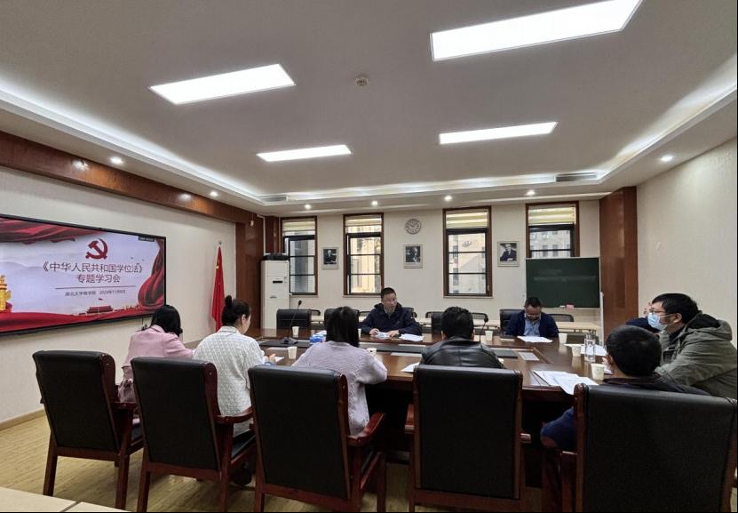 本次活动以习近平新时代中国特色社会主义思想为指导,深入贯彻落实党的教育方针,以增强全院师生的法治意识,完善学校学位管理制度,切实增强依法依规开展学位工作能力为目标,3044永利集团登录师生开展多种学习形式深入学习《学位法》。为深刻领悟《学位法》颁布的重大意义,全面深入系统学习《学位法》精神,11月8日3044永利集团登录召开学位评定分委员会,组织分委会委员、学院秘书进行《学位法》专题学习,并对学习宣传和贯彻落实工作方案进行研讨。会议由3044永利集团登录院长程时雄主持。院长程时雄指出学位制度是我国教育基本制度,《学位法》的学习宣传和贯彻落实工作非常重要,要深入学习领会学位法的精神内涵,明确学位授予工作中的各项要求,切实保障学位授予质量,与会人员围绕《学位法》的核心内容及学习宣传和贯彻落实工作方案进行了热烈而深入地研讨。此次会议的集中学习和研讨使全体分委会委员、学院秘书进一步加深了对《学位法》内涵与精神的理解与领悟,3044永利集团登录将进一步加强学风教风建设,提高学位授予质量,确保《学位法》的各项规定在学院得到有效落实。