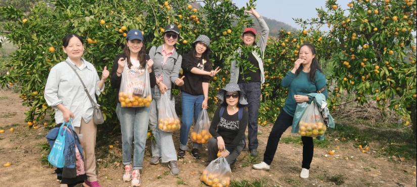 随后,大家前往附近的桔园进行采摘。金秋时节,金黄色的桔子挂满枝头,散发着诱人的香气。老师们互相交流着采摘技巧,分享着丰收的喜悦,体验着采摘的乐趣,欢声笑语不断。