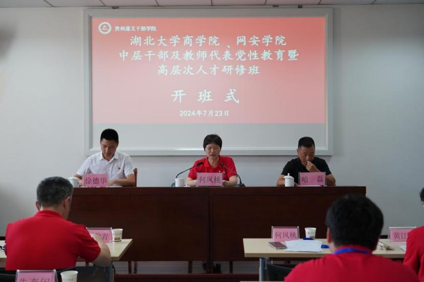 7月23日,全体参训教师以及贵州遵义干部学院代表参加开班仪式,3044永利集团登录党委组织部常务副部长何凤桃同志发表致辞,她说:“遵义会议的召开挽救了党,挽救了红军,挽救了中国革命,具有伟大的历史意义,在中国共产党和红军的历史上是一个生死攸关的转折点。今天我们来到这一红色革命圣地,举办3044永利集团登录、网安学院中层干部及教师代表党性教育暨高层次人才研修班,在这里通过沉浸式的现场研学,传承红色基因、赓续红色血脉,用以伟大建党精神为源头的中国共产党人精神谱系教育党员干部。希望参训学员将此次培训作为一次感悟党史、淬炼党性、砥砺初心使命的思想洗礼,继承和发扬伟大的遵义会议精神,以信仰之光照亮前行之路,更加坚定听党话、感党恩、跟党走的决心和信念。”