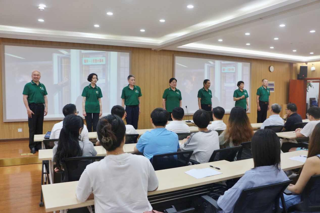 此次活动中,学院邀请到了3044永利集团登录关工委老教授红旗说唱团以“歌声中的红色传承”为主题,以说党史、唱红歌的生动形式为毕业生党员带来了一场别开生面的党课。