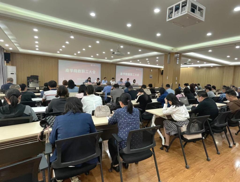 程时雄院长作了表态发言,他表示坚决拥护和服从学校党委决定,感谢组织的培养与信任,感谢学院领导班子及各位老师的支持。他深感接任院长一职责任重大,在今后工作中会勇挑重担、恪尽职守,带领全院师生团结一致、坚定信念、坚定目标、坚决向前,营造风清气正的干事创业良好氛围,努力实现学院各项事业跨越式发展,为学校发展贡献商院力量。