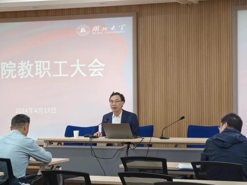 副院长程时雄针对国家社科基金申请及结项工作作了动员和解读;党委副书记邵阡强调了学生安全教育的重要性,通报了2024届毕业生就业情况,并就招生、校友、宣传等方面工作进行了安排部署。