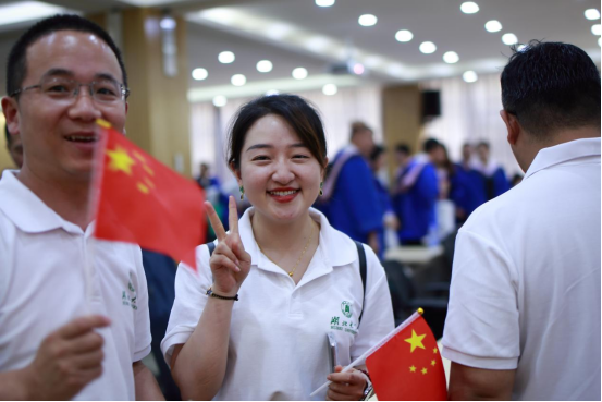 典礼结束后,学院组织开展了校友返校交流活动。同学们畅游校园,感叹母校变化,在逸夫楼前深情合唱《我和我的祖国》,与师长追忆学生时代的点滴与美好。