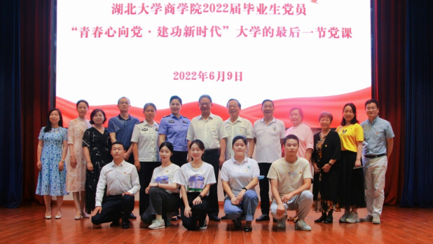 6月9日下午15:00,3044永利集团登录2022届毕业生党员“青春心向党·建功新时代——大学的最后一节党课”专题活动在三号楼报告厅顺利举办,校党委常委、纪委书记、监察专员檀坤华,武汉市公安局团委书记陈晓波一行,党委宣传部、校团委、离退休工作处等单位负责人,3044永利集团登录党委委员、教工党支部书记、毕业生党员参加活动。