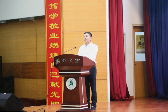 活动伊始,全体参会人员集体奏唱国歌、重温入党誓词,为本次党课活动拉开序幕。在主题党课环节中,毕业生党员张俊辉结合自身本科入伍经历,介绍了自己从入伍前的立志,到入伍时的坚定,再到退伍返校后的笃行三个不同时期的成长与蜕变。他通过军运会的志愿服务工作,疫情期间的爱心筹款、捐赠物资等实际行动将“有一分热,发一分光”的人生格言践行到学习生活的方方面面。