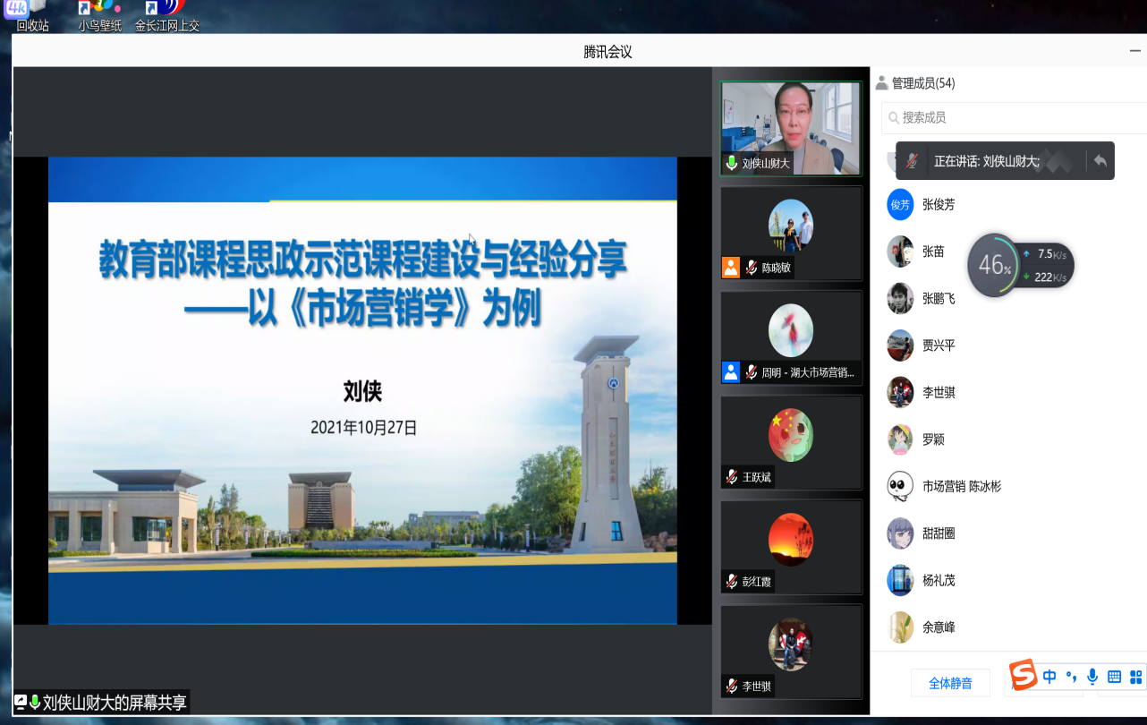 10月27日晚上,学院第三场课程思政培训会通过线上形式顺利举行。会议邀请教育部课程思政示范课程《市场营销学》骨干成员,山东财经大学的刘侠副教授做了题为“教育部课程思政示范课程建设与经验分享——以《市场营销学》为例”的辅导报告。各系部主任及教师参会。培训会由副院长王鸾凤主持。