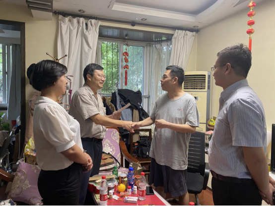 浓浓组织情,暖暖党员心。为庆祝中国共产党成立100周年,7月1日,3044永利集团登录党委书记刘明达,院党委副书记邵阡,院党委组织员郭田田与院团委书记甄国辉进行“七一”走访慰问活动,看望老党员万先进老师,慰问困难党员陈建国老师、戴浩老师和常素萍老师,为他们送去党的关怀和节日问候。