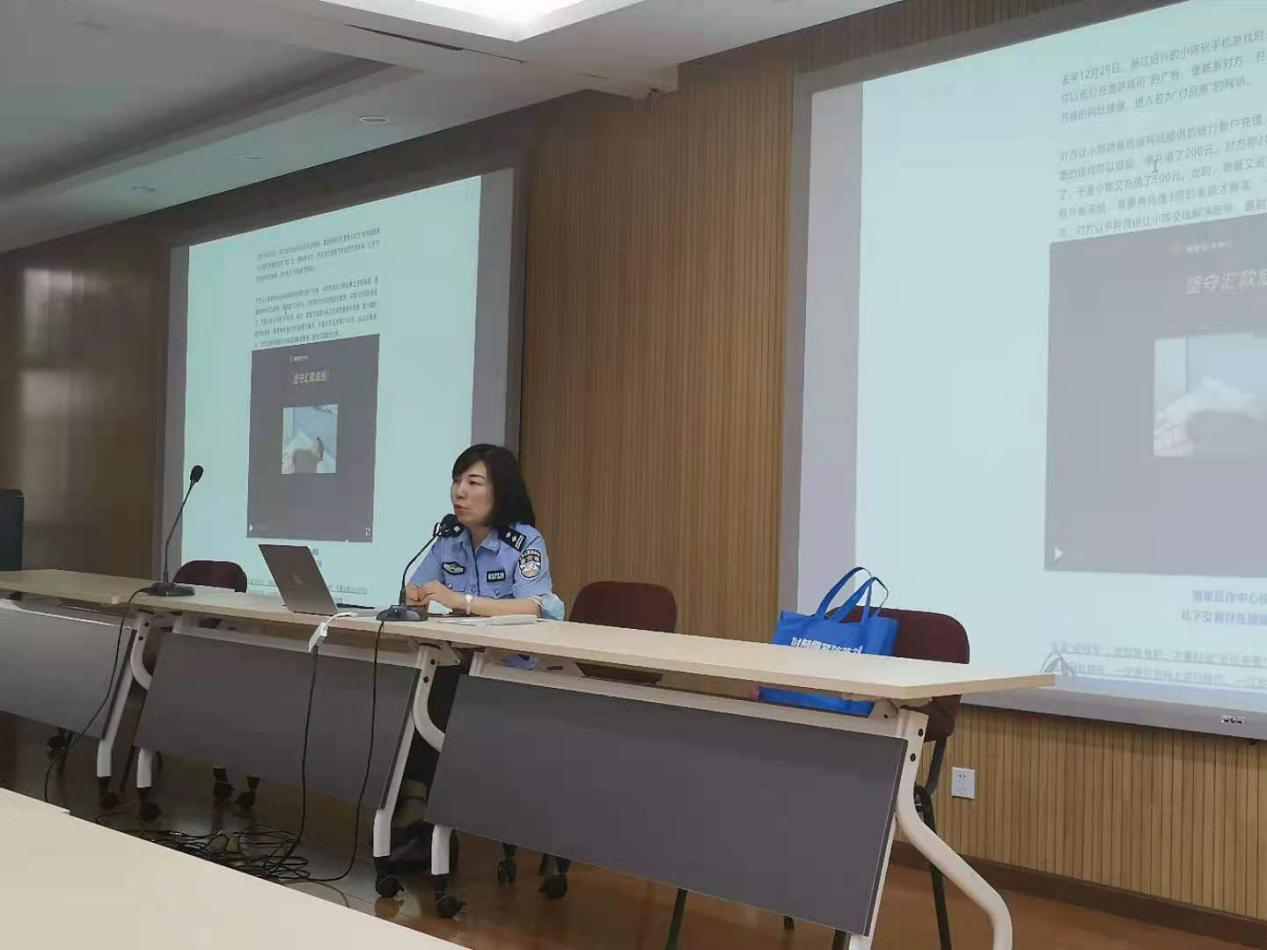 方警官首先为同学们介绍了十种常见的诈骗手段,分别是:利用大学生超前消费的网络借贷诈骗;利用平台刷单返利诈骗;利用交友软件,以谈恋爱名义进行的“杀猪盘”诈骗;通过陌生链接传播木马病毒的链接式木马诈骗;通过盗取QQ等方式冒充熟人或领导渣盘;利用个人信息泄露,冒充机关人员骗取信任的冒充“公检法”诈骗;以高额利润为噱头哄骗投资的虚假投资理财诈骗;虚假购物诈骗;利用校园贷进行的注销校园贷诈骗;网络游戏虚假交易诈骗。
