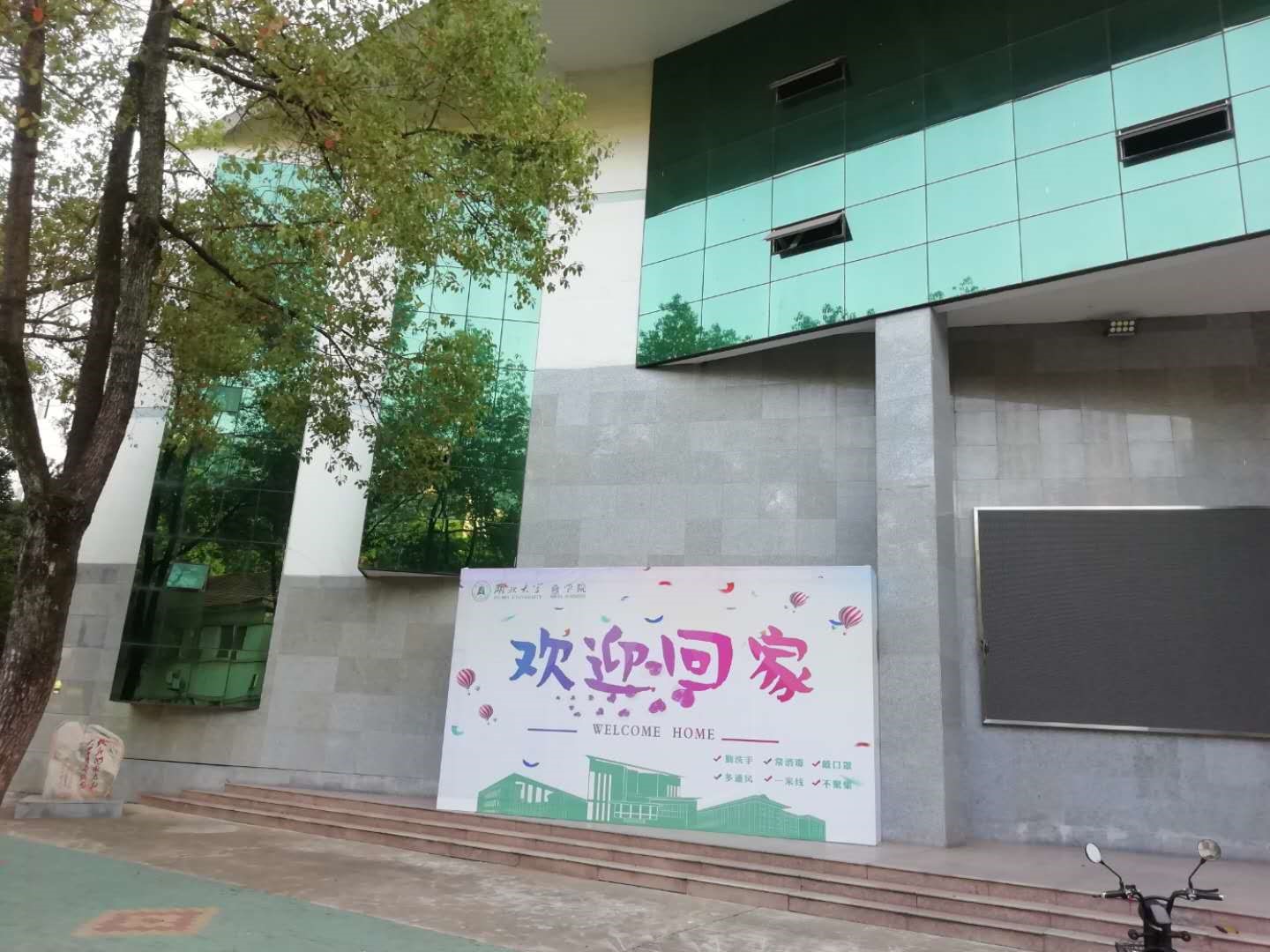 3.逸夫楼C座和三号楼3044永利集团登录门前“欢迎回家”的标语已经立起,静待同学们的归来。