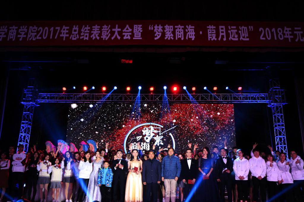 今年商院元旦晚会以“梦絮商海,葭月远迎”为主题,其中“葭月”代表着阴历11月,与晚会时间相契合,同时意味着回忆过去,展望未来。此次元旦晚会中绚丽的LED屏幕、酷炫的灯光音响效果,微博在线互动平台和激动人心的抽奖环节吸引了全场观众积极参与,为在场观众献上了一场精彩绝伦的视听盛宴。