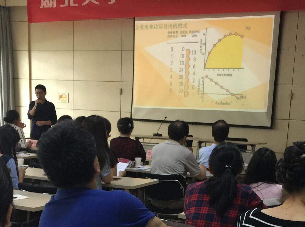 冯老师主讲的内容是国际贸易学中的一节——《动物福利与动物福利壁垒》,徐老师则就微观经济学中《效用论》一章进行了精彩讲授。两位教师对授课内容均进行了精心设计和准备,授课时或温文尔雅、娓娓道来,或幽默风趣、激情澎湃,表现出了各具特色的教学风格,和良好的精神面貌。