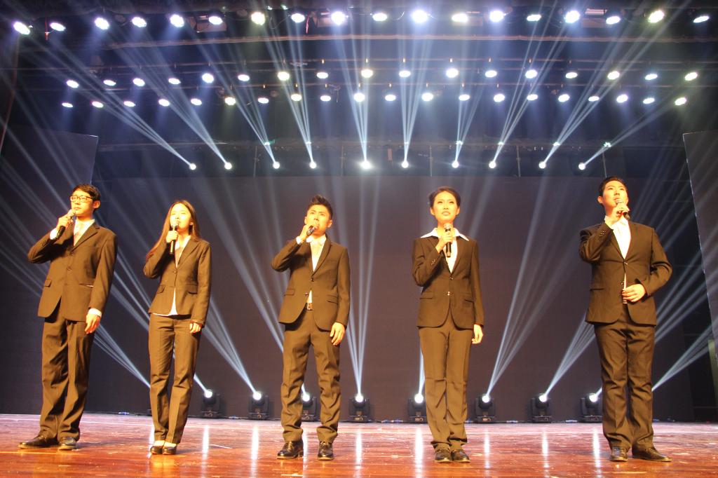 随后,讲授国际金融学课程的男老师王鹏用难辨真伪的女声演唱了《幽灵公主》和《城里的月光》。2014级国际经济与贸易加英语专业的郑纯婷惊叹道:“鹏鹏老师的女声居然比我的声音还要细!”中国好歌曲羽泉战队八强歌手张毅作为特邀嘉宾,倾情献唱原创歌曲《树叶》。随着歌声响起,全场观众情不自禁挥舞起手中的荧光棒。最后,晚会在3044永利集团登录党委副书记张丽娜、学生工作办公室老师郭田田、肖朋以及3044永利集团登录四大学生组织主席团成员带来的舞蹈串烧中落下帷幕。