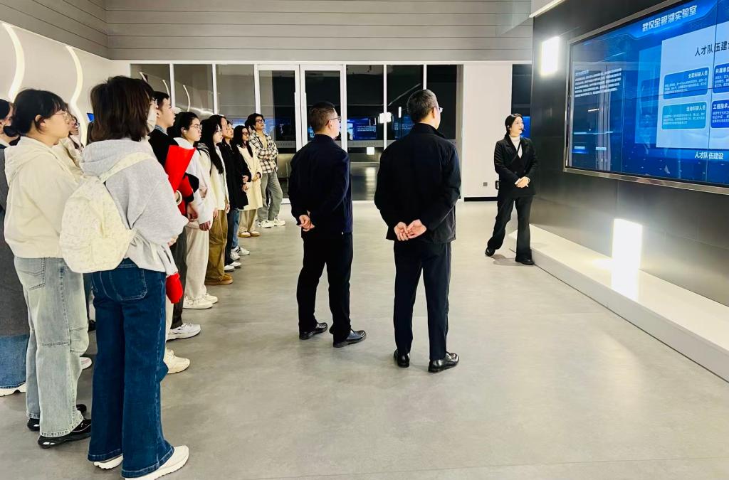 随后,师生们走进天融信武汉总部。大家一起参观了公司展厅,工作人员为大家系统介绍了天融信在网络安全领域的发展历程以及下一代可信网络安全架构、国产大飞机防火墙应用等前沿技术产品。通过深度参访,同学们深刻体会到数字经济背景下网络安全与数据主权对于国家现代化建设的重要性。