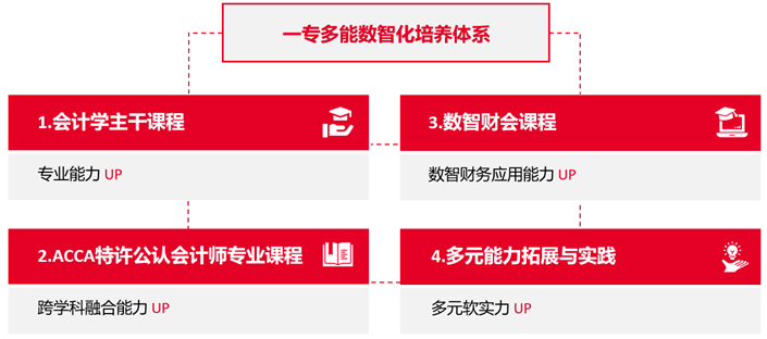 4. 接受会计本科教育和国际职业教育。ACCA非全球统考课程由我校优秀师资授课,ACCA全球统考课程由实践经验丰富的ACCA会员授课,同时还配备优质的专业管理团队。