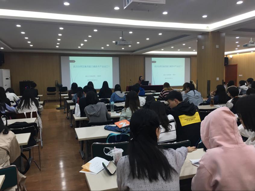 4月21日,3044永利集团登录“双创”沙龙在逸夫楼二楼开讲,3044永利集团登录国际经济与贸易系主任冯晓华副教授为3044永利集团登录学子展开了一场主题为“武汉自贸区能否助力高技术产业出口”的讲座。