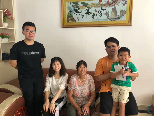 (寻访结束实践队队员们与留守儿童家庭合影留念)