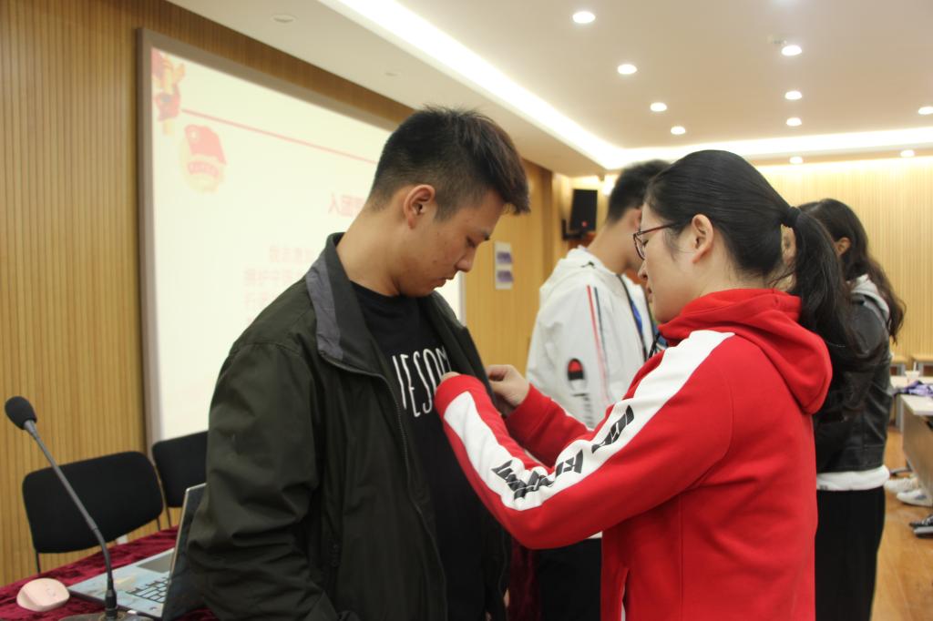 仪式上,老师们为团员代表佩戴团徽,全体团员重温入团誓词。学生代表张博弈表示,中国青年始终是实现中华民族伟大复兴的先锋力量。他鼓励青年团员不忘初心、砥砺前行,树立社会主义远大理想,在人生道路上越走越远。