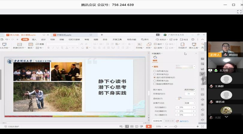 这次团校“云开班”仪式不仅使参会团员深刻理解“共同战疫,青年担当”的主题精神,加强青年团员的思想政治建设,更培育了3044永利集团登录青年团员奋发图强、甘于奉献的精神。第二期团校学员,经济学1801班的雷舒婷表示:在这次团校和大家的交流和学习中,我更加坚定了自己服务社会,为集体奉献的初心,我要向王万奇老师学习,在新时代的背景下积极作为、勇于奉献。