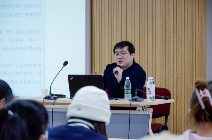 11月24日,李力教授做专题讲座,从专业角度为同学们介绍了各类比赛的简要情况,结合赛事指导经验对学校即将举办的“三创赛”比赛流程、参赛规则、选题方向等问题作重点解读,并鼓励同学们积极参与到各类创新创业赛事中。